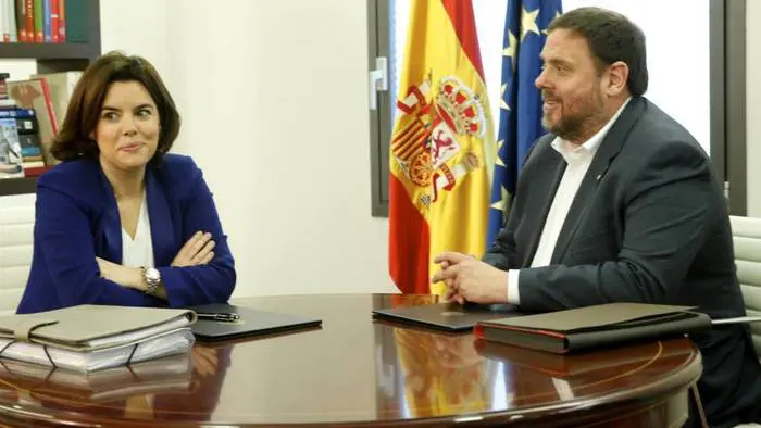 La vicepresidenta del Gobierno, Soraya Sáenz de Santamaría, había venido manteniendo una vía de diálogo abierta con el vicepresidente catalán, Oriol Junqueras, aplaudida por los sectores empresariales catalanes que no quieren la independencia ni en pintura, pero que creen que es necesario llegar a alguna clase de pacto que contente a Cataluña y sea aceptable para Madrid.