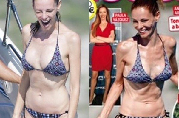 La sombra de la anorexia planeó sobre la figura de Paula Vázquez en el verano de 2011. Tras varios años de silencio, hace unas semanas en la revista ‘¡Qué me dices!’, la presentadora gallega explotaba y decía que: «Ese fue un encarguito de una cadena a la que no quise obedecer. No hice unos formatos que me parecían machistas. Esas fotos están manipuladas, estoy segura. Yo tengo una 38 y en esas fotos estaba esquelética”.