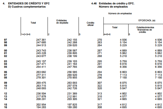 Una crisis económica a la que habría que sumar un proceso de concentración en el sector que ha dejado unas cifras a la luz que dejan tiritando a cualquiera como los datos que reflejamos en el titular y que muestran como en menos de una década (datos a cierre de 2008) las entidades de crédito han despido a 29 trabajadores al día mientras que han cerrado seis oficinas cada 24 horas. Datos desoladores que probablemente hayas vivido muy de cerca puesto que entre nuestros conocidos, amigos y familiares siempre (o casi siempre) había un trabajador de banca. O lo mismo te basta con echar un vistazo al pasado y ver cómo han cambiado las sucursales bancarias de tu barrio o de los alrededores del mismo.