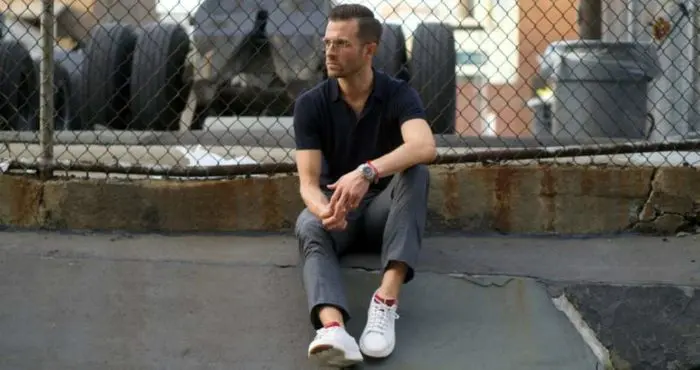 En cuanto a los zapatos, es cierto que unos náuticos le darían un toque muy adecuado, pero en esta ocasión os voy a recomendar que optéis por unas zapatillas deportivas de color blanco. En estos momentos suponen una auténtica tendencia y son combinables en todas las ocasiones, así que, si te gusta ese estilo, hazte con unas zapatillas.