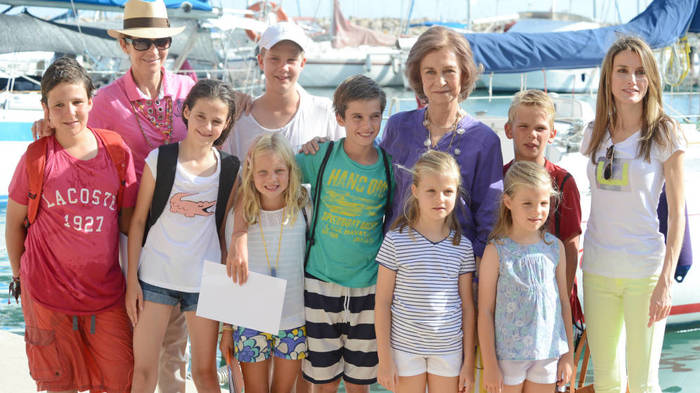 Esta es la última foto que se recuerda de doña Sofía rodeada de todos sus nietos y acompañada de su hija Elena y de la entonces princesa Letizia. Data de 2013 y se ubica en Palma de Mallorca. Según ha publicado el periódico ‘La Vanguardia’, la emérita consiguió reunir el pasado lunes a sus ocho nietos en una impresionante cena en el restaurante Ola del Mar, un local situado frente al club náutico de Portixol, a las afueras de la ciudad Palma.