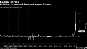 Según David Jensen, fundador de Jensen Strategic, una firma que ofrece servicios de consultoría para el sector de la minería, el costo del préstamo de paladio por una semana subió 25% en junio como resultado de la escasa oferta. Por lo general, los ajustes son de 1% o menos.