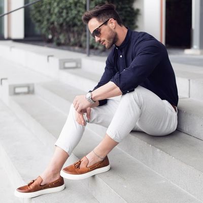 Ir a la oficina con pantalones de color blanco en otoño es posible, claro que sí. Pero también es cierto que no se puede combinar de cualquier forma. En este caso, en el de la oficina, lo más sencillo, práctico y acertado es ir a lo básico. Una americana, unos mocasines, una camisa blanca y un pantalón blanco, acompañado por un cinturón de color negro, claro está. Ahí tenéis una combinación perfecta para los looks de oficina.