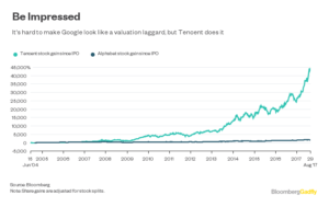 Alibaba y Tencent, particularmente, han crecido con mayor rapidez que los gigantes tecnológicos estadounidenses. Para dar sólo un ejemplo: las acciones de Alphabet han multiplicado por 22 el precio en que la compañía lanzó su oferta pública inicial en agosto de 2004, cuando se llamaba Google. El precio de los títulos de Tencent, que lanzó sus papeles en Hong Kong un par de meses antes que el buscador de Internet, se ha multiplicado por 441.