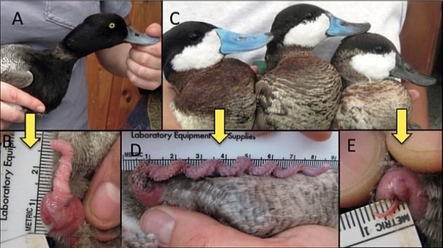 Agregó que los patos de color rojo macho mantienen su pene «dentro de un bolsillo» en el cuerpo del macho.