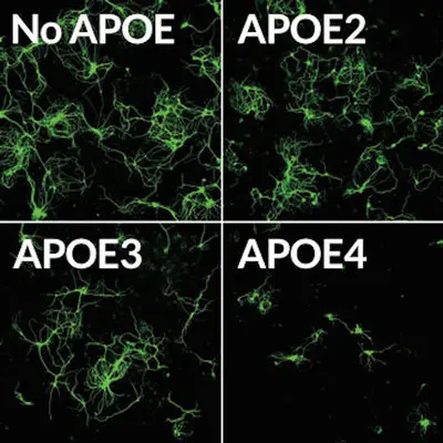 Durante más de 20 años, los investigadores han sabido que las personas que tienen la versión E4 del gen APOE están en mayor riesgo de desarrollar Alzheimer. Una versión del gen llamado APOE3 no tiene ningún efecto sobre el riesgo de Alzheimer, mientras que la versión APOE2 protege contra la enfermedad. Detalles moleculares de cómo la proteína APOE, que ayuda a eliminar el colesterol del cuerpo, afecta a las células cerebrales, no se entienden.