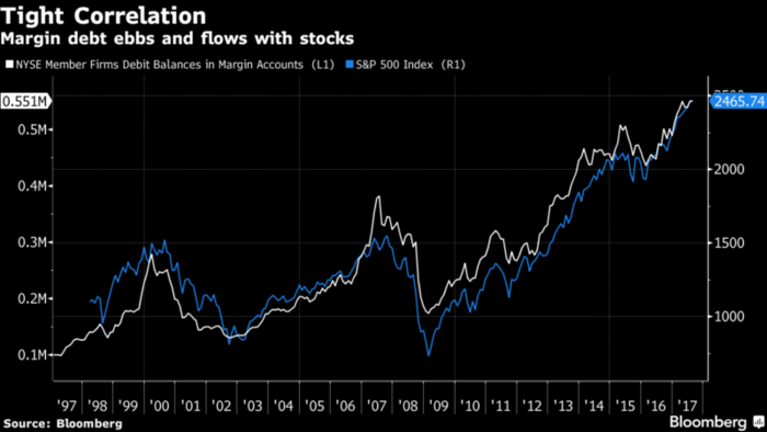 La deuda de margen en máximos históricos significa euforia en los mercados: ésta refleja el monto de dinero prestado para la compra de valores. Suena aterrador cuando la gente apunta al margen de deuda en máximos históricos porque eso significa que los inversores están tomando prestando más dinero que nunca para comprar acciones.