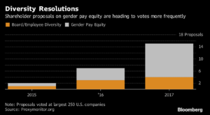 Otro gestor de activos, Arjuna Capital, presentó nueve resoluciones en 2016 sobre las diferencias de remuneración entre hombres y mujeres en las empresas tecnológicas. Entre ellas, Facebook y Google “no tomaron medidas significativas”, según Arjuna en un comunicado la semana pasada. “Hoy en día, Alphabet está bajo fuego por su falta de transparencia en la equidad de género, haciéndola un tema federal”, escribió en una carta al presidente de Alphabet, Eric Schmidt.