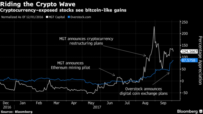 Las acciones de Overstock.com subieron después de que el minorista en línea informó que ingresaría al mundo de las monedas virtuales. Mientras que los títulos de MGT Capital Investments, la firma de seguridad cibernética que tiene vínculos con el polémico desarrollador de antivirus John McAfee, se dispararon tras el anuncio de su incursión en el intercambio de bitcoins.