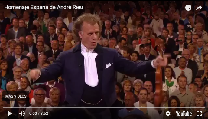 Tras una semana triste en nuestro país, me ha parecido una buena idea terminarla con este homenaje a los españoles protagonizado por el extraordinario André Rieu en su concierto en Maastricht en 2012. El gran Rieu quiso terminar su apoteósico concierto con un homenaje a España. Su violín es una joya única, construido por el propio lutier Stradivarius en 1667.
