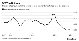 Pero el año pasado, los estadounidenses de clase trabajadora dedicaron un porcentaje creciente de sus ingresos a pagar deuda, lo que representa el primer incremento desde 2010 y un cambio que probablemente contribuya al ajuste de las tasas de incumplimiento, según Moody´s Investors Service esta semana.