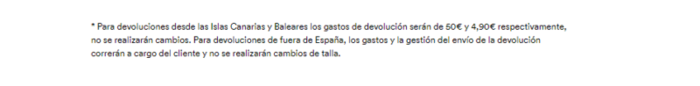 También Privalia. En su política de uso cita que “en compras realizadas desde/con destino a las Islas Canarias, se descontará automáticamente el IVA de los productos en el momento de realizar la compra”. Tampoco cobra gastos de envío. La clavada llega si se quiere devolver el producto. Cobra casi siete euros a Península y Baleares y 12 euros a Canarias.