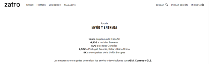 Sin embargo, las hay que sí envían productos y consiguen que les salga rentable ¿Cómo? Aumentando los gastos de envío. Es el caso de la tienda online Zatro. Mientras que no cobra por los envíos en Península, para Baleares cobra 5 euros y para Canarias 50 euros. Lo chocante del caso es que cobra menos por enviar paquetes a otros países. Entre 5 y 8 euros, un 90 y un 84% menos que por enviarlos al archipiélago canario.