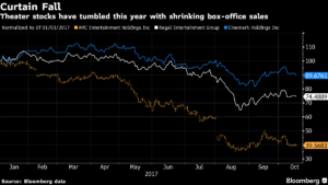 Eric Wold, analista de B. Riley en San Francisco, calcula que la taquilla estadounidense terminará 1% por debajo del récord de 11.380 millones de dólares (9.656 millones de euros) del año pasado. Algunas sorpresas podrían dar un impulso a las acciones de esta industria. AMC Entertainment y Regal han caído 59% y 22%, respectivamente, por ejemplo.