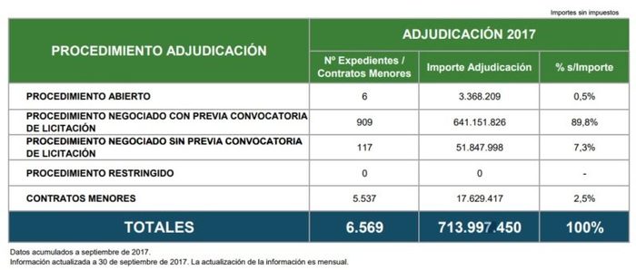 Estas siguen en la línea de años anteriores. En 2016, el gestor licitó 9.458 contratos por un valor de 817,2 millones de euros. Y en 2015, el número de contratos fue mayor, pero el importe menor. Un total de 9.619 contratos por valor de 686 millones de euros.