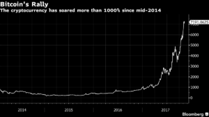 Cualesquiera que sean los riesgos, Wall Street está cada vez más cerca de adoptar al bitcoin como un activo de buena fe. La semana pasada, el CME Group, el operador de mercados más grande del mundo, anunció que planeaba lanzar futuros de bitcoins antes de fin de año, lo que podría allanar el camino para la aprobación de fondos cotizados en Bolsa basados en la criptomonedas. El 2 de noviembre, Lloyd Blankfein, el CEO de Goldman Sachs Group, dijo que el bitcoin podría ir a la corriente principal.
