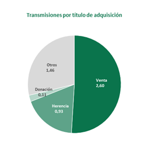 En caso de venta, es el vendedor quien se hace cargo de dicho impuesto, mientras que, si se trata de herencias o sucesiones, es el heredero o sucesor el que debe pagarlo. De los 5 millones de inmuebles transmitidos en los últimos 4 años, 2.6 millones corresponden a compraventas y casi un millón a herencias.