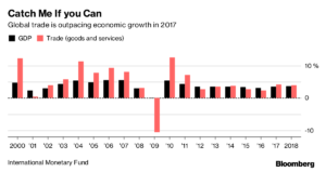 Al acercarse el final del 2017, el Fondo Monetario Internacional (FMI) proyecta que el volumen del intercambio de bienes y servicios habrá aumentado 4,2% durante el año, frente al 2,4% en 2016. Esa sería la primera vez que el comercio supere el crecimiento de la producción desde 2014 y se remonta a los días previos a la crisis cuando era una ocurrencia regular.