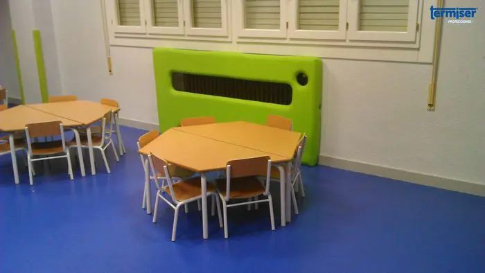 Como cualquier espacio pensado para ser utilizado por niños, el escenario del teatro o salón de actos del colegio debe cumplir con ciertas medidas de seguridad. Desde Termiserprotecciones aseguran que toda área destinada al uso infantil debe estar asegurada contra todo tipo de accidentes, mediante elementos adecuados y de calidad, como acolchados o protectores de esquinas, siempre unificando la estética con esa función protectora.