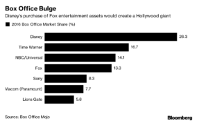 Un acuerdo de Disney-Fox seguiría a años de creciente concentración en la taquilla, y la mayoría de las ventas de entradas se destinarán a un número menor de películas. El año pasado, las 10 principales películas representaron el 34%, frente a un promedio histórico de alrededor del 28%, según Doug Creutz, analista de Cowen.