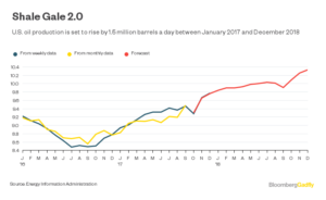 La mayor diferencia, sin embargo, está en el lado de la oferta. La AIE ve un crecimiento mucho más fuerte que el de la OPEP en los suministros de petróleo de los Estados Unidos. El Departamento de Energía es igual de optimista. Su último pronóstico muestra que la producción de petróleo norteamericana aumentará en 1,6 millones de barriles por día entre diciembre de 2016 y diciembre de 2018.