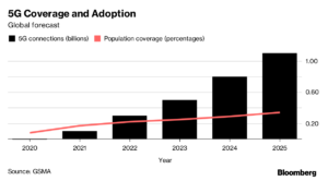 La mayoría de las empresas de telefonía móvil apuntan a 2020 para el lanzamiento inicial de la tecnología, que promete velocidades 10 veces más rápidas y un tiempo de retraso en la transferencia de datos cuando se solicite. Después de eso, los ingresos de las operadoras inalámbricas crecerán alrededor de 2,5% anual hasta el 2025, sólo alrededor de medio punto porcentual más que su crecimiento en los cinco años anteriores, según el grupo de la industria GSMA.