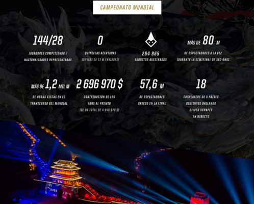 Riot Games ya ha hecho públicos los números oficiales de los diferentes eventos de esports este año en su página oficial. Un total de 57.6 millones de espectadores únicos siguieron la gran final que tuvo lugar en el Estadio Olímpico de Pekín conocido como El Nido de Pájaro.