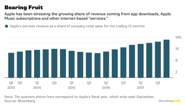 Parte del crecimiento relativamente lento se debió a una disminución en las descargas de iTunes, pero Pacific Crest también creía que los ingresos de los otros servicios de la empresa habían crecido más lentamente que la cantidad de personas que usaban iPhones, y que las ventas de App Store habían alcanzado su punto máximo. Eso sugiere que la firma puede no tener éxito de manera consistente en su plan para obtener más dinero de los dispositivos que ya ha vendido.