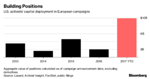 Los inversores han realizado 135 demandas públicas contra empresas con sede en Europa en lo que va de año, en comparación con un récord de 142 en 2016, según datos compilados por el investigador Activist Insight.