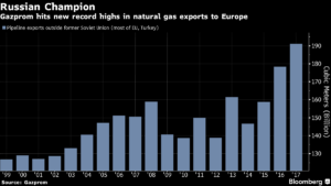 Rusia trabaja para mantener las exportaciones de gas natural a Europa cerca de niveles récord en 2018 después de que el mayor proveedor del continente, Gazprom PJSC, indicara que sus entregas este año indican que logrará sus ambiciones de expansión.