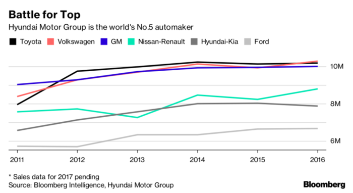 Hyundai Motor lucha para mantenerse como el quinto mayor fabricante de coches del mundo