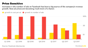 Ya está sucediendo. El número de anuncios publicitarios en Facebook aumentó un 10% en el tercer trimestre respecto del año anterior, mientras que los precios subieron un 35%. Fue el segundo trimestre consecutivo en que esto sucedió.