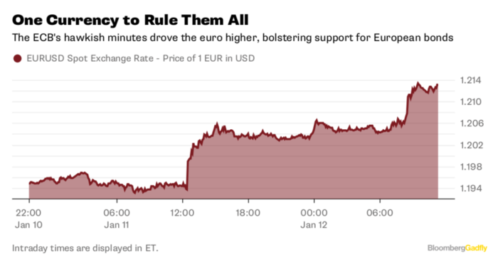 Las actas del Banco Central Europeo, correspondientes a su decisión política de diciembre, publicadas el jueves, revelaron un tono agresivo sobre la orientación futura que elevó la moneda común frente al dólar.