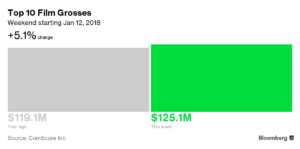 «Paddington 2«, una secuela de la película de acción en vivo de Warner Bros de 2015 basada en el clásico libro infantil británico, abrió en el séptimo lugar con 10,6 millones de dólares. Se prevé que absorberá 16 millones de dólares en tres días y 20 millones de dólaresen cuatro, según Box Office Mojo. La película obtuvo un 100% de críticas positivas, según RottenTomatoes.com.
