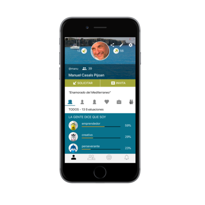 La App cuenta con una interfaz intuitiva y rápida. Una vez registrados, los usuarios realizan su autoevaluación e invitan a sus amigos a evaluarse mutuamente. El proceso de evaluación no dura más de 2 minutos y consiste en la selección del tipo de relación, los atributos que mejor la caracterizan, la identificación del área de mejora y la escritura de un mensaje privado.