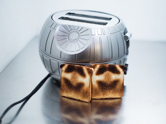 ¿Necesitas una tostadora y no sabes cuál escoger? Nosotros te recomendamos la tostadora con la forma de la Estrella de la Muerte, una de las estaciones espaciales del universo de Star Wars. Es un aparato eléctrico muy útil, ya que seguro que a todos os gusta desayunar unas buenas tostadas, y original. Ninguno de tus amigos tendrá esta tostadora en su casa, a no ser que sea tan freak de Star Wars como tú.