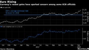 La primera decisión política del BCE de 2018 se produce después de que el euro subió a su nivel más fuerte frente al dólar en más de tres años. El secretario del Tesoro de Estados Unidos, Steven Mnuchin, respaldó esta semana un dólar más débil, y señaló que refuerza el comercio de la nación.