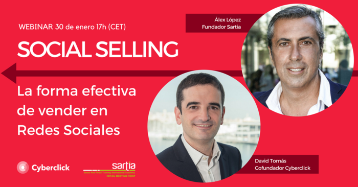 David Tomás CEO y cofundador de Cyberclick, y Álex López fundador de Sartia y de Retail Meeting Point y autor del libro “Cliente digital, vendedor digital”, compartirán su experiencia en la temática a través del webinar en línea: “Social Selling: la forma efectiva de vender en redes sociales” el 30 de Enero a las 17hrs CET.