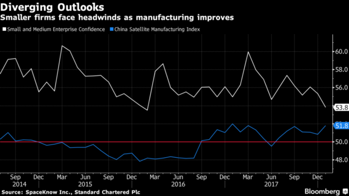 “El fuerte impulso probablemente se trasladará al primer trimestre, con la economía apoyada por la fuerte demanda externa y el consumo interno”, mencionó Xia Le, economista jefe de Asia en el Banco Bilbao Vizcaya Argentaria. “El factor de riesgo es el desapalancamiento, ya que el mercado todavía está subestimando lo difícil que podría ser, ya que China cambia su enfoque a la calidad más que a la velocidad del crecimiento”.