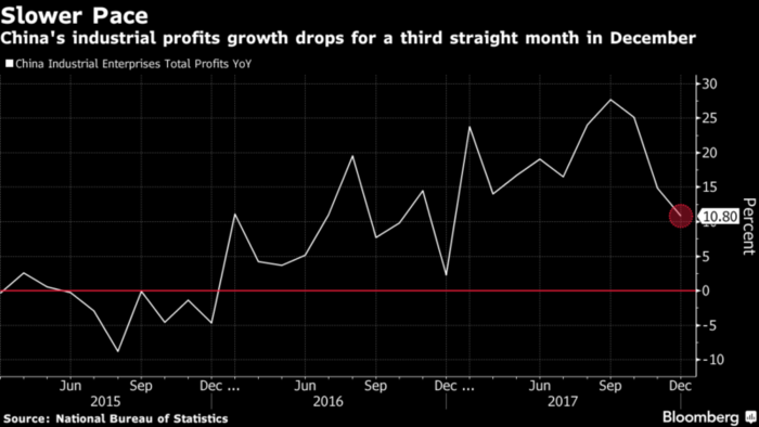 En vista de que los últimos datos de China expusieron cierta moderación al final de un año optimista, es probable que los informes de este mes muestren que la economía mantiene el ritmo, a pesar de la desaceleración de las ganancias industriales.