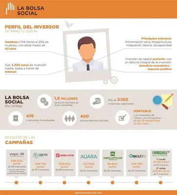 El perfil más común del inversor de impacto corresponde a un hombre (75% frente al 25% de mujeres) con una edad media de 43 años, según datos de los más de 3.100 inversores registrados en los dos años de actividad de La Bolsa Social, la primera plataforma de equity crowdfunding autorizada por la CNMV en España, que pone en contacto a inversores de impacto y empresas sociales. Junto a la comunidad de inversores adscritos a la plataforma, se encuentran también cerca de 400 emprendedores sociales.