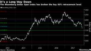 Independientemente de si la administración Trump quiere una divisa estadounidense fuerte o no, la zambullida de esta semana está rompiendo barreras técnicas que se habían mantenido como proverbiales últimas líneas de defensa contra una brecha significativa más baja.