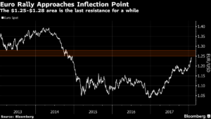El euro se ha negociado cerca de 1.,25 dólares esta semana, un nivel clave para la moneda. En 2014, la moneda común pasó algún tiempo en el área de 1,25 a 1.28 dólares, lo que debería ofrecer cierta resistencia en la venta masiva de dólares. Sin embargo, si el dólar se abre paso, no hay nada que impida que el euro suba por encima de los 1,30 dólares.