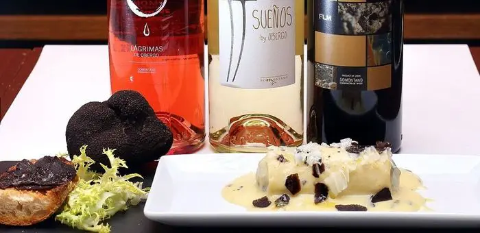 El primer vino que se podrá maridar con el “oro negro” aragonés es Lágrimas de Obergo, un rosado que armoniza muy bien con la trufa negra. Un vino que recuerda a la frambuesa por su toque entre floral y mineral, muy fresco y agradable en su paso por boca, y con un elegante aroma a flores blancas.