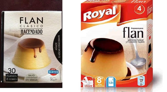 Parece que en este caso, otro de los grandes plagios de Mercadona, ha optado por variar un poco el color del envase. Sin duda, los flanes Royal son otro de esos productos que estamos muy acostumbrados a ver. Uno de los grandes clásicos tanto en nuestra casa como en los supermercados. Su color rojo es inconfundible y también, su presentación.