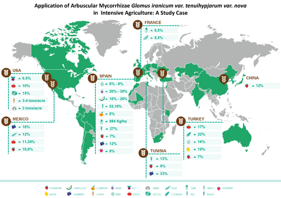 Los estudios publicados demuestran que este microorganismo mejora el estado fisiológico de las plantas y sus rendimientos productivos con aumentos de las cosechas de hasta un 45%. La revista ha seleccionado un conjunto de trabajos científicos que evalúan la eficacia de este hongo micorriza arbuscular en distintos tipos de cultivos: lechuga, uva de mesa, tomate, arroz, fresa, plantas ornamentales, etc. y en distintos tipos de suelos y condiciones. Los resultados son comparados con los de otros hongos similares que han demostrado rendimientos muy inferiores en su capacidad de colonización de las raíces y de adaptación a todo tipo de condiciones ambientales, y por lo tanto un menor potencial de mejora de los rendimientos productivos de las cosechas.