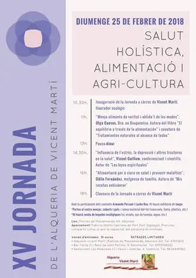 El 25 de febrero de 2018 en L’Alqueria Vicent Martí en Alboraia València el sector ecológico vuelve como cada año a tener una cita imprescindible donde agricultores y consumidores van a poder intercambiar conocimientos, opiniones y además asistir a tres conferencias de reputados especialistas del sector. Desde hace 15 años El agricultor ecológico Vicent Martí abre las puertas de su Alquería para que se convierta en centro de debate e intercambio de conocimiento