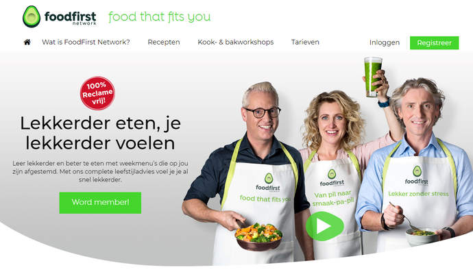 FoodFirst es una nueva plataforma de comunicación en línea. La creó un equipo que anteriormente trabajaba en 24Kitchen. Comer bien y sentirse bien con alimentos frescos. Añaden el perfil de alimentos y la información de objetivos de salud para crear una receta personalizada. Con el apoyo de médicos, instructores personales y, por supuesto, de cocineros, eligen los alimentos más adecuados para las comidas a fin de que se logren el conjunto de objetivos.