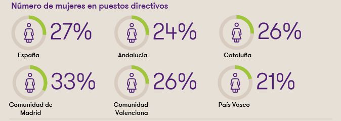 La cifra es, a la vez, alentadora y descorazonadora. En España, el número de mujeres directivas se sitúa en el 27%. Si lo comparamos con otros países, estamos a la par con Austria o Turquía, y por delante de Finlandia, Alemania, Reino Unido o Estados Unidos. Sin embargo, ese porcentaje permanece invariable desde hace dos años. “Nuestro país no puede considerarse como un rezagado pero el clima de estancamiento y de lenta evolución es claramente preocupante y obliga a replantear los pasos y soluciones puestos en funcionamiento en los últimos años”, asegura Isabel Perea, socia de Auditoría de Grant Thornton. Por comunidades autónomas, Madrid es quien está mejor posicionada (33%), seguida por la Comunidad Valenciana y Cataluña (26%), Andalucía (24%), y País Vasco (21%).