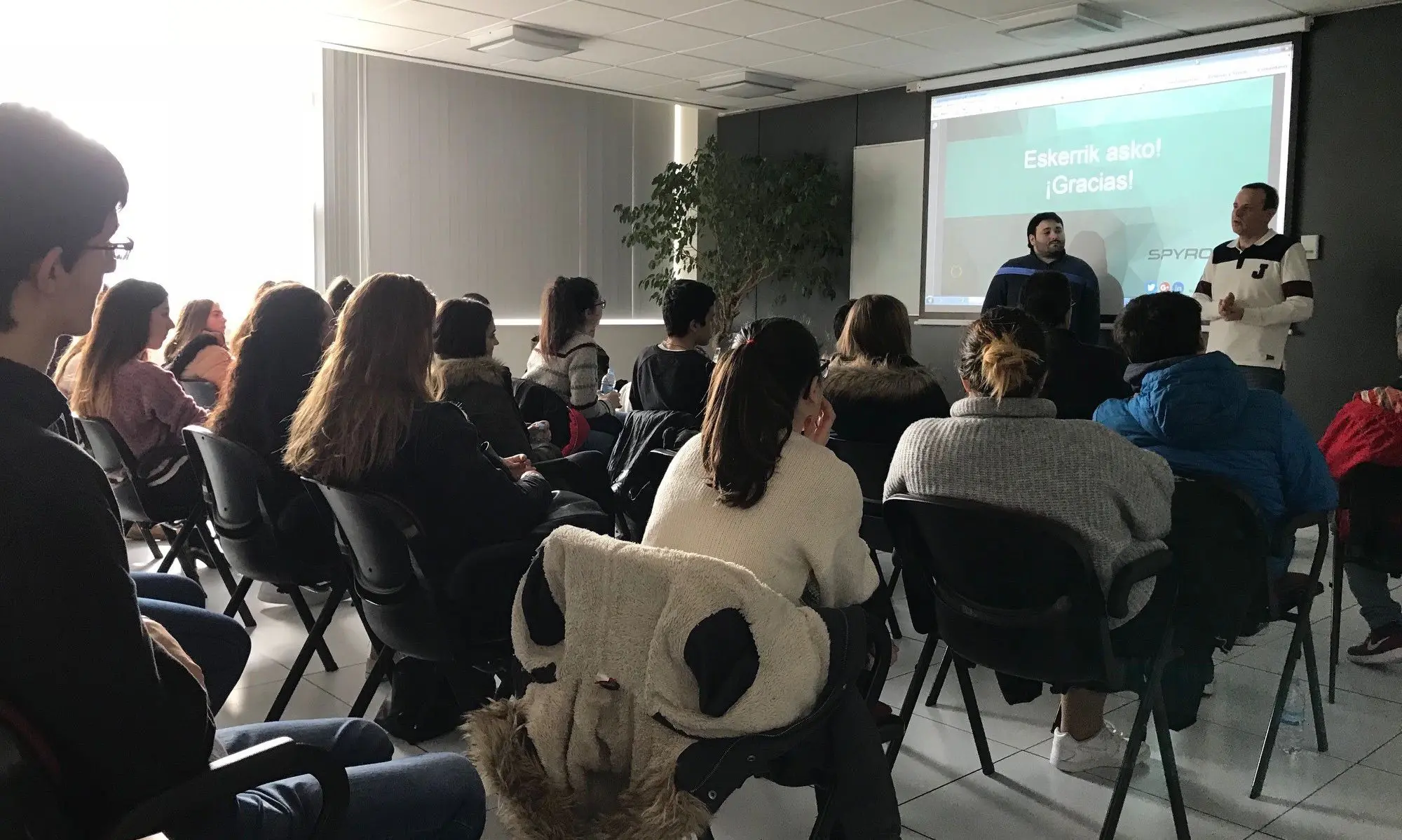 En el marco de esta iniciativa un grupo de 50 alumnos del IES Alza y LaSalle Donostia han visitado las instalaciones centrales de SPYRO en el Parque Tecnológico de San Sebastián para conocer la empresa y las avanzadas tecnologías para la industria que desarrolla.